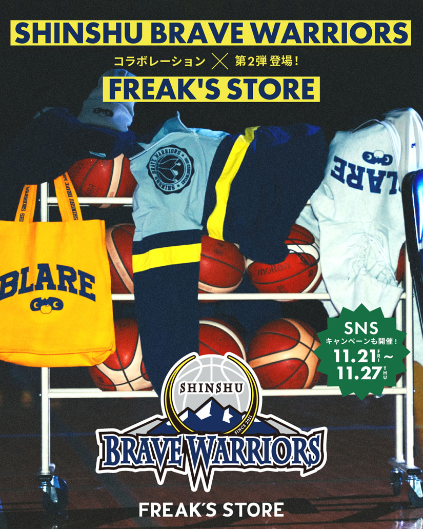 2025年11月21日(金)から11月24日(月・祝)まで長野県長野市のセレクトショップ「FREAK’S STORE(フリークスストア) 長野店」で『信州FREAK』が開催。「地球の歩き方 長野市編」の発刊を記念して、長野市内の企業(いむらや・みんなのテンホウ・茶臼山動物園・長野電鉄)とのコラボレーショングッズが販売が行なわれるほか、長野市をホームタウンとするプロバスケットボールチーム「信州ブレイブウォリアーズ」との特別コラボ商品第2弾の販売、県内人気ショップのPOP UPなどが行なわれます。