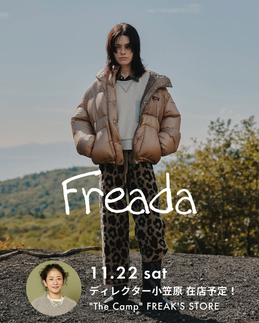 「Freada(フリーダ)」は、メキシコの女性画家 フリーダ・カーロをブランドアイコンとする、ビビットな色合い・柄とミリタリー要素を組み合わせたアパレルブランド。普段は展開していないアイテムも、イベント限定の”モアバリエーション”として用意。11月22日(土)限定で、ディレクター小笠原さんの在店販売も予定。