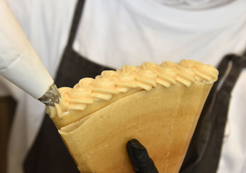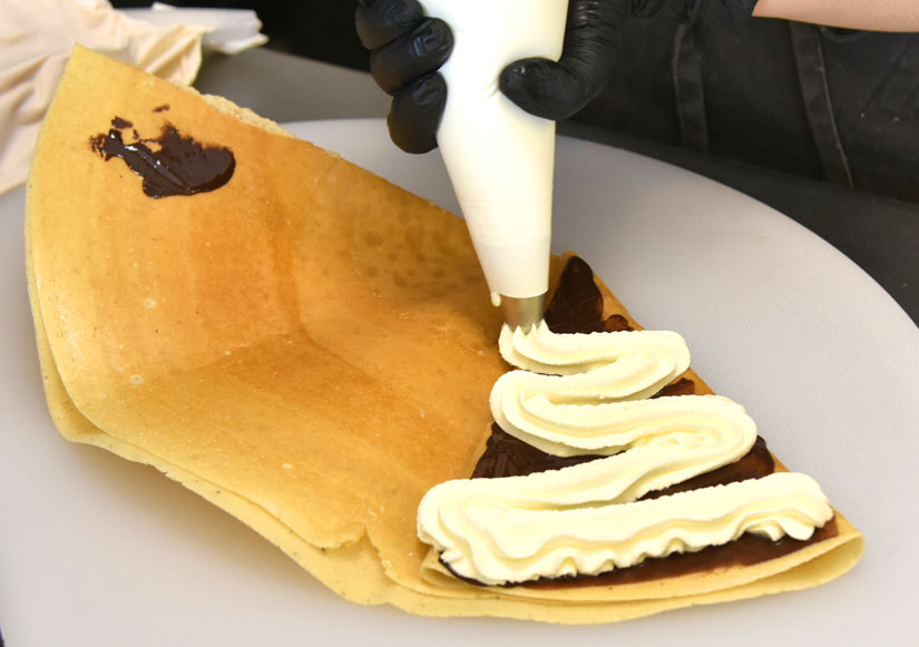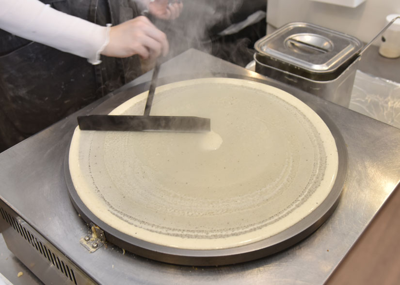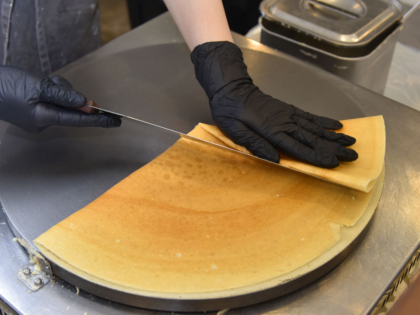 焼きあがったクレープ生地は「黄金クレープ」と呼ばれる金色に。
