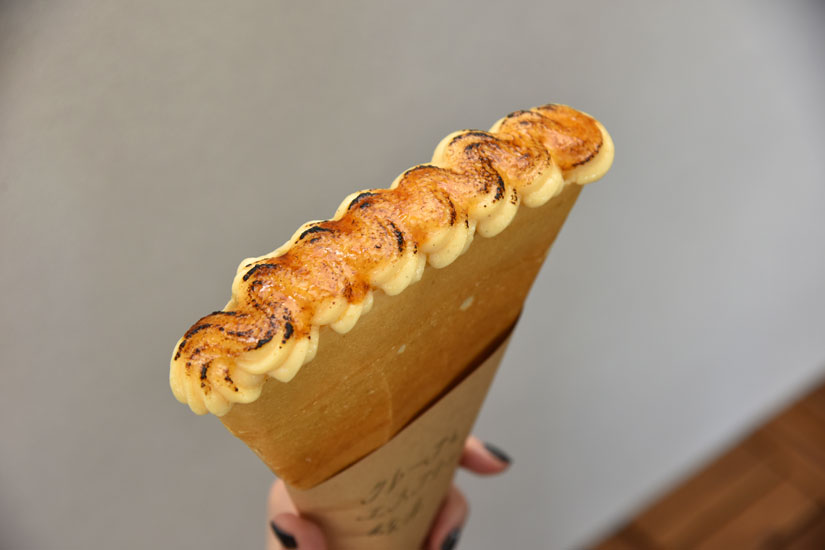 生クリーム、カスタードクリームともたっぷり。クリームの味わいはともにしつこくないので最後までおいしく味わえます。ブリュレした焦げ目も美味しさを引き立てます。