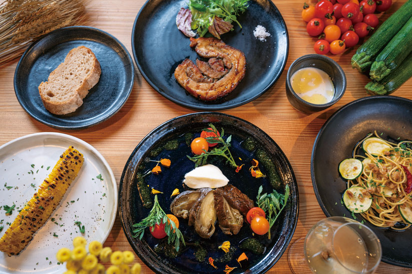 長野県南佐久郡佐久穂町に地元食材×薪火×本格イタリア料理を提供する「薪火イタリア料理 自在堂」。佐久で高校時代を共に過ごしたシェフ・徳田さんと代表・松村さんが再びこの地に集い、豊かな気候風土や魅力的な人々との出会いに惹かれ同店を2025年4月にオープン。千曲川流域の旬の恵みである野菜、山菜、きのこ、果樹、川魚、地鶏、和牛、豚、ジビエなどを、こだわりの生産者や猟師から仕入れ、薪火でじっくりと仕上げています。