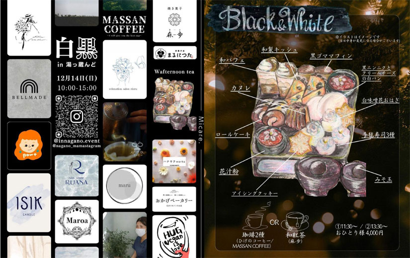 2025年12月14日(日)に長野県須坂市の日帰り温泉施設「関谷温泉 湯っ蔵んど」で『BLACK & WHITE』が開催。白と黒をテーマにしたイベントで、スイーツや雑貨、リラクゼーション、クラフトなど15店舗が集まります。白と黒の世界観を軸に、「整う・余白・シンプル(しずけさ)」を五感で楽しめます。