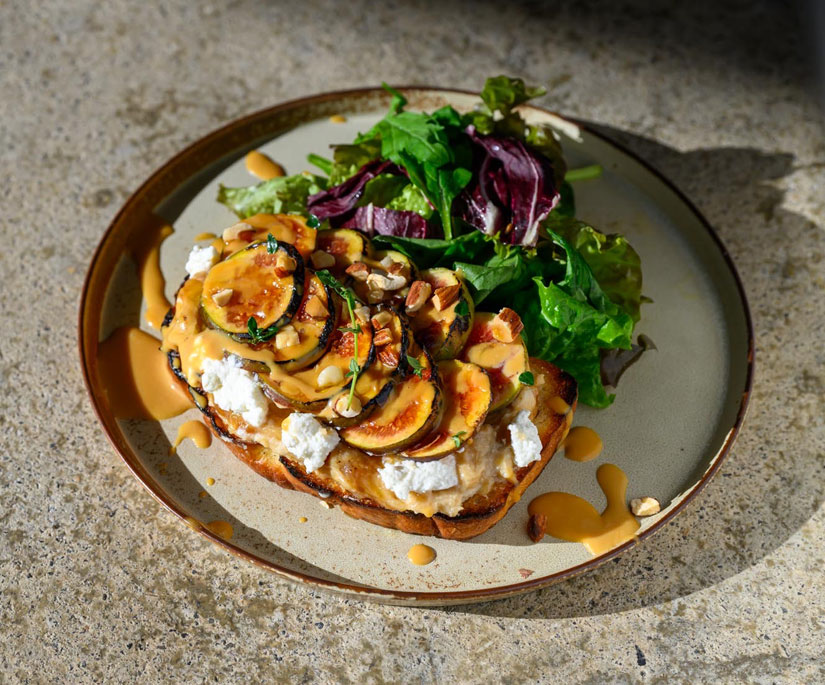 リコッタチーズとバナナを使った甘いオープンサンドです。焦がした砂糖をキャラメリゼし、はちみつとキャラメルソースがかかった贅沢な仕上がり。