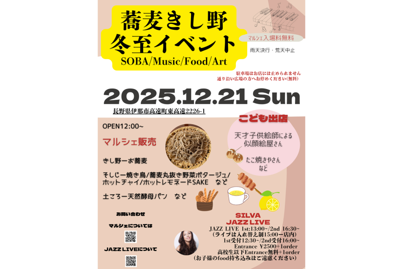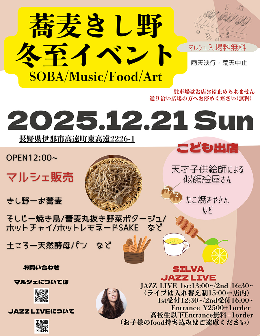 長野県伊那市高遠町の「蕎麦きし野」で『蕎麦きし野 冬至イベント』が2025年12月21日に開催。