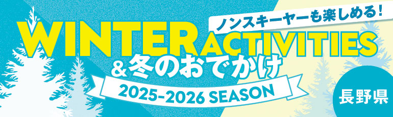 白銀の世界に包まれる冬の信州は、スノーアクティビティから温泉、グルメまで多彩な楽しみがそろう魅力的な場所。極上のパウダースノーを誇る名だたるスキー場をはじめ、家族で楽しめる雪遊び、愛犬と過ごせるスポット、食やイベントで冬を満喫できるエリアなど、冬レジャーを満喫できるスポットが盛りだくさん。