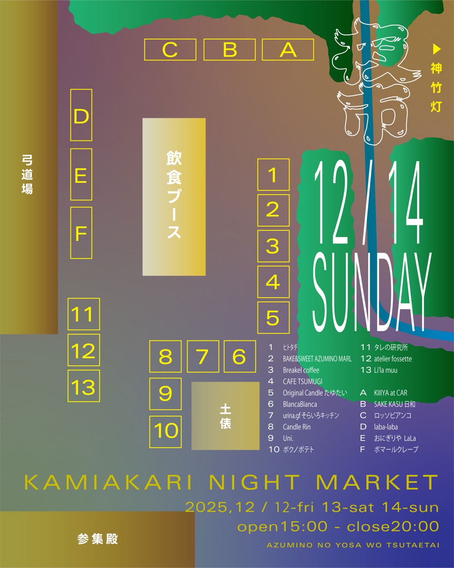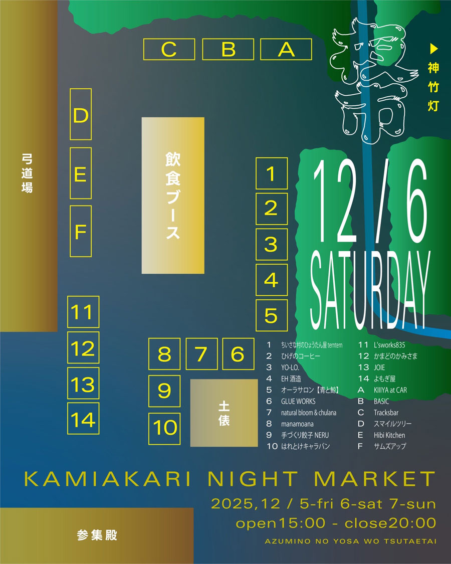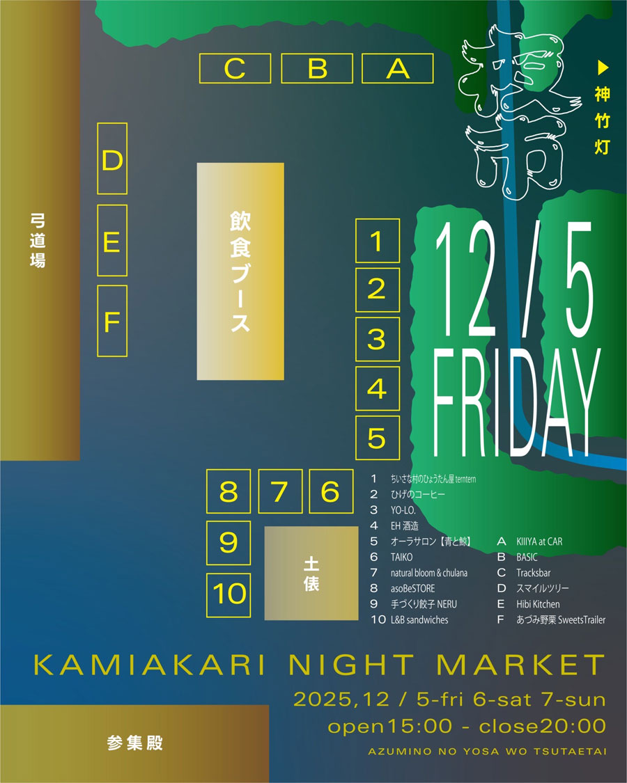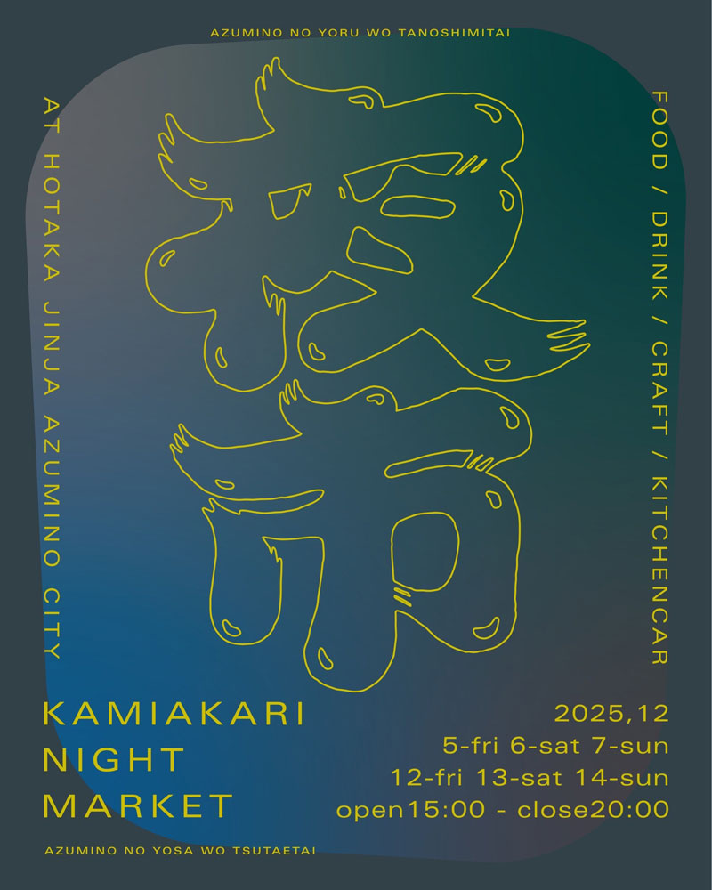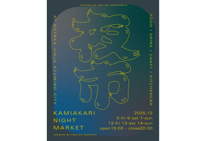 長野県安曇野市の穂高神社で、『カミアカリ ナイトマーケット/KAMIAKARI NIGHT MARKET~夜市~』が、2025年12月5日(金)・6日(土)・7日(日)・12日(金)・13日(土)・14日(日)の6日に渡り開催。