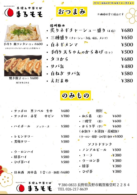 深夜まで営業する「まるもも」は、忙しい一日の終わりの「締め」にも、賑わう夜の街で小腹を満たす「夜食」にも最適です。そして、名匠の技が光るこの味は、わざわざ足を運ぶ価値のある「特別な一杯」として、記憶に刻まれるでしょう。お二人の熱い情熱と信頼関係から生まれた「まるもも」は、権堂の夜景に新たな輝きを添える注目の新星です。