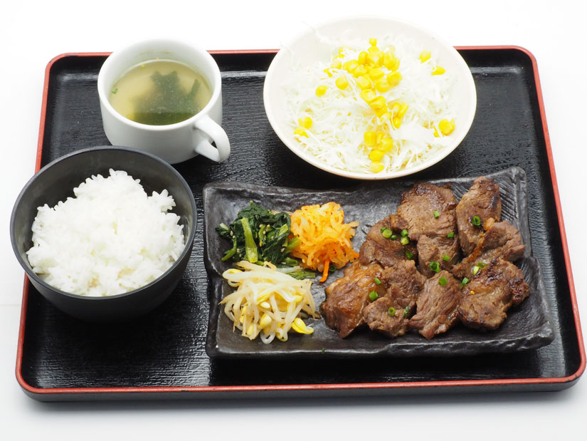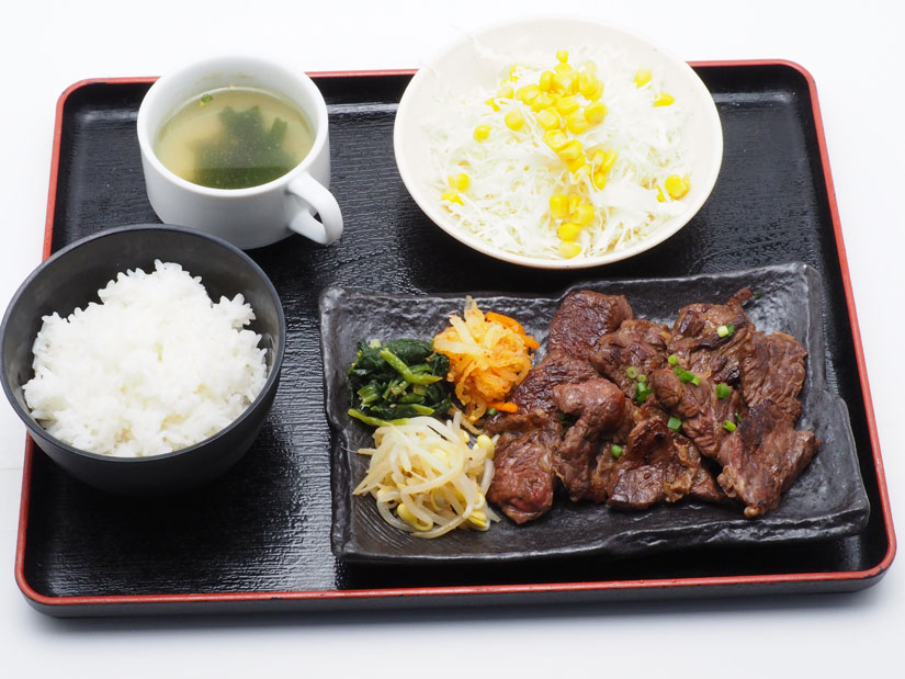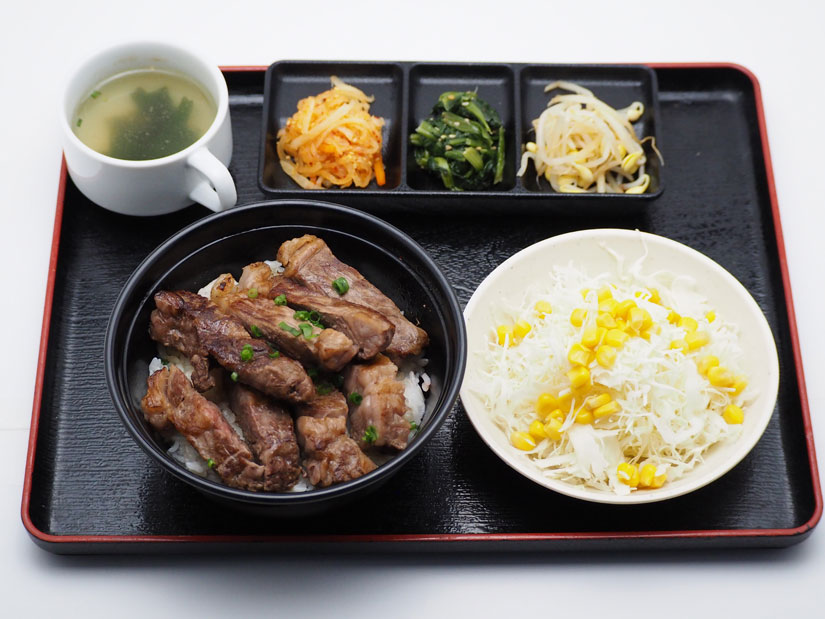 おすすめは店舗限定販売の「国産牛サーロインステーキ丼」。焼肉屋が誇る良質な牛肉を厳選し、食べ応えのあるボリューム感に仕上げたそう。さらには、「国産牛カルビ定食」や焼肉屋で人気の「石焼きピビンバ」など、焼肉屋のメニューがそのまま定食に。定食メニューには、ごはん・スープ・ナムル3種類がセットに。また、「石焼ピビンバ」や麺類などにも、スープとサラダがついています。