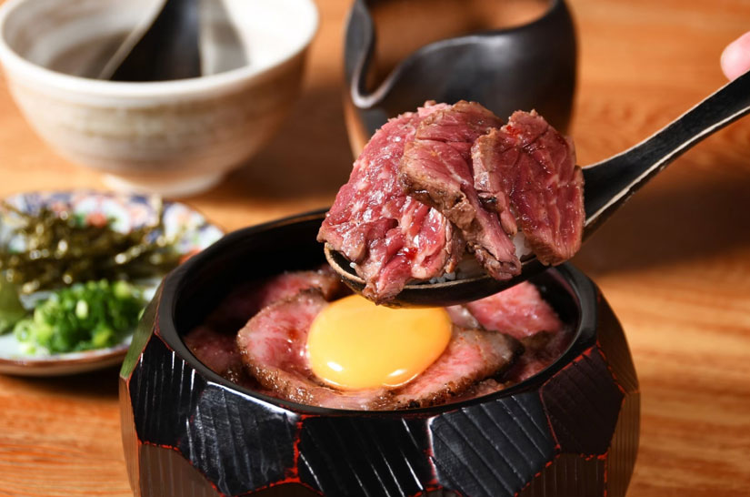 厳選した飛騨牛に試作を重ねたこだわりの自家製タレをかけた「飛騨牛ひつまぶし」(4,180円)。まずはそのまま、次に薬味を添えて、シメは特製出汁でお茶漬け風に。一品でさまざまな味わい方を楽しめます。