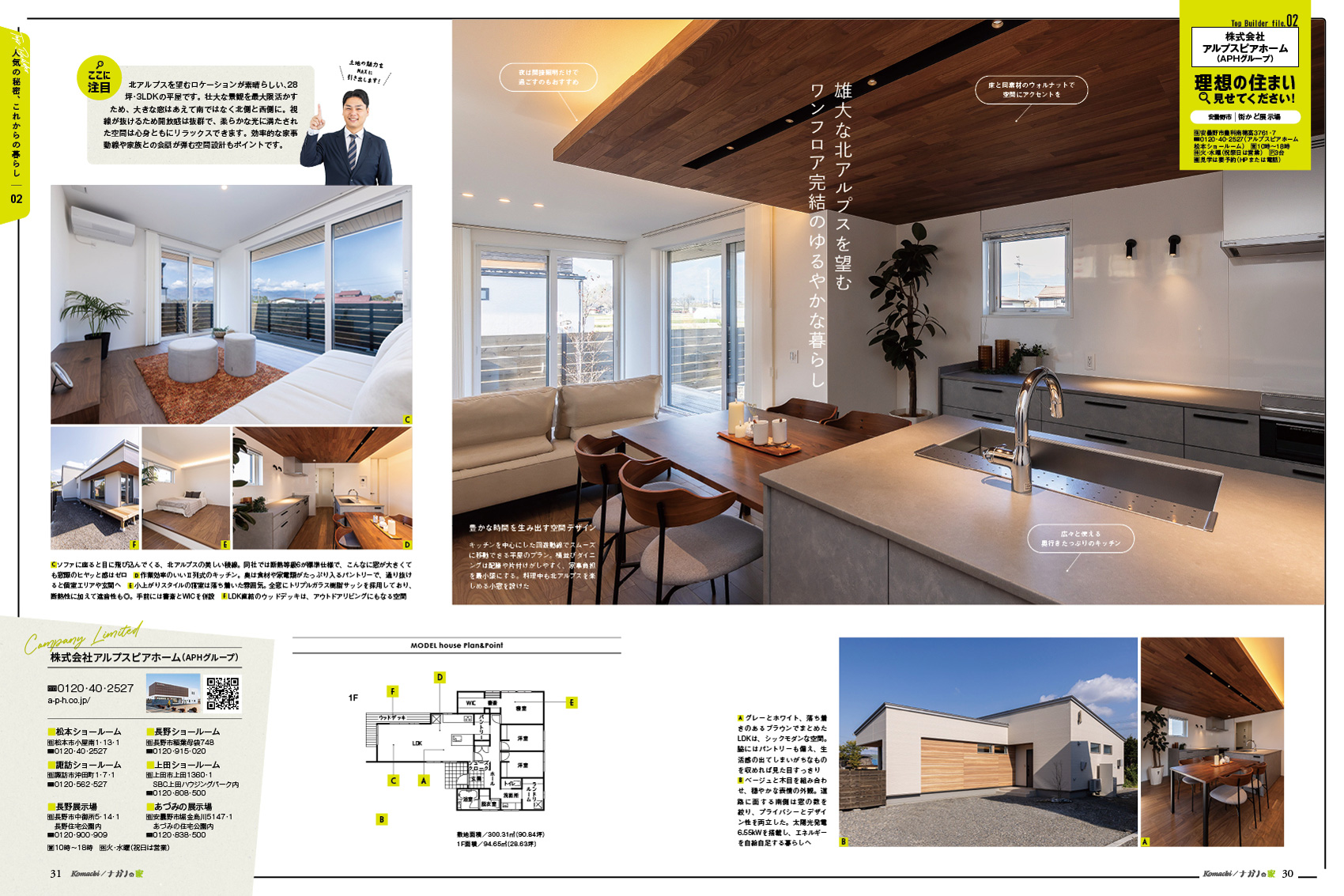 信州の着工ランキング上位30位から厳選した8社のトップビルダーに家づくりを徹底取材。施工実績豊富な各社が語る、家づくりへの想いや理想の暮らし、こだわりのポイントなど、住まいづくりのヒントが満載の特集です。