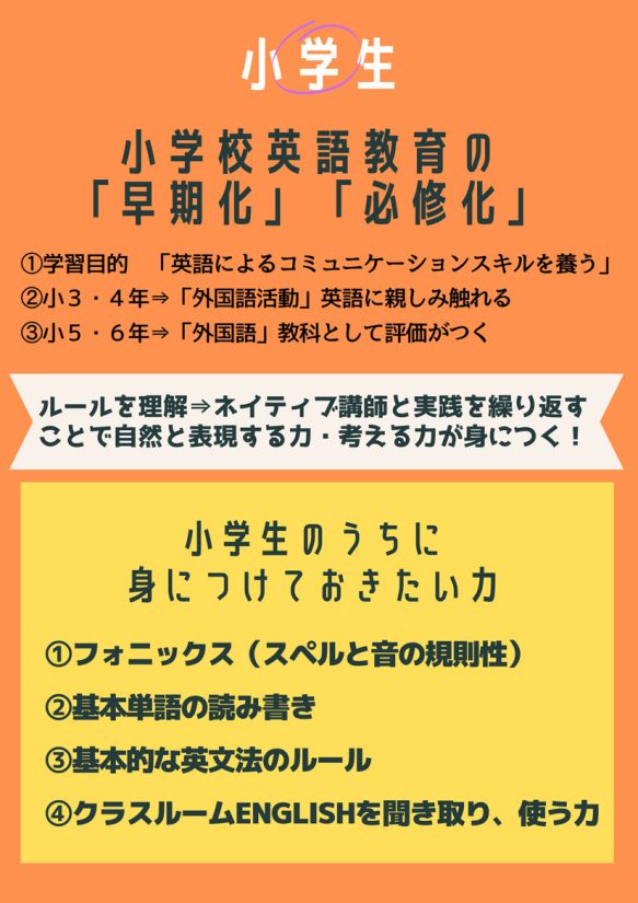 小学6年生になると、中学準備コースとして文法や読み書きなど、中学校に入って困らないようなアプローチを行います。