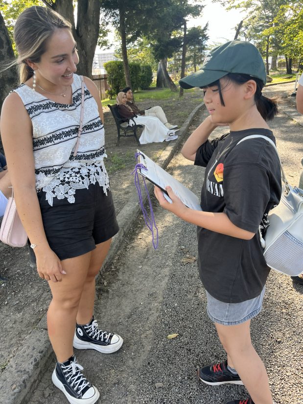 2025年度より、外国人講師50分、日本人講師25分の時間配分に変更し、より英語を「自分のことば」として使える力を伸ばします。覚えた英語を実践し、生きた英語として身につけることを目標としています。