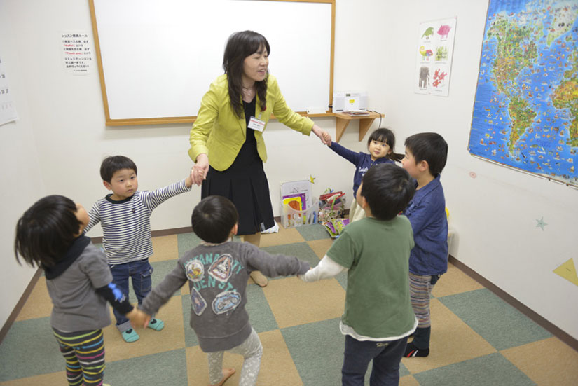 A:現在、世界8か国から17名の外国人講師がいます。みんな子どもが大好きでとてもフレンドリー。実際にお子さんがいるパパだったりしますので細やかな気配りや、楽しませてくれる先生たちです。