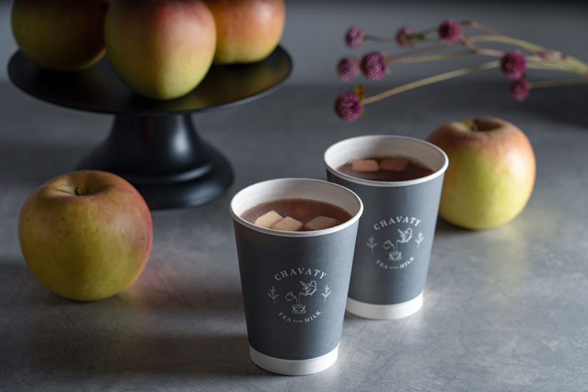 香ばしいほうじ茶をベースに、信州りんご「名月」をすりおろした果肉を使った自家製のピューレとシナモンを合わせた、ホットなアップルサイダー。ラズベリーの華やかな酸味をアクセントに加えています。