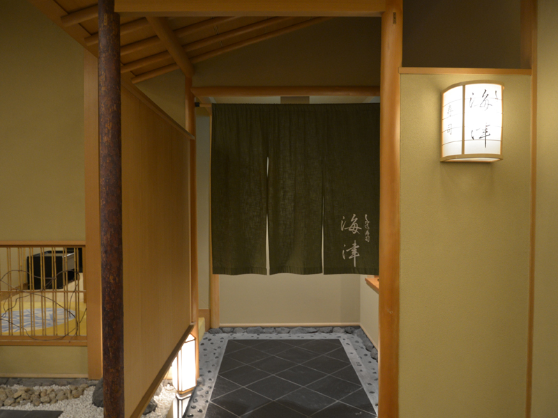 「寿司 海津」のエントランス。見た目的には高級割烹そのもの。果たしてこんな気軽にお邪魔していいのか、緊張しますが勇気を振り絞って暖簾をくぐります。