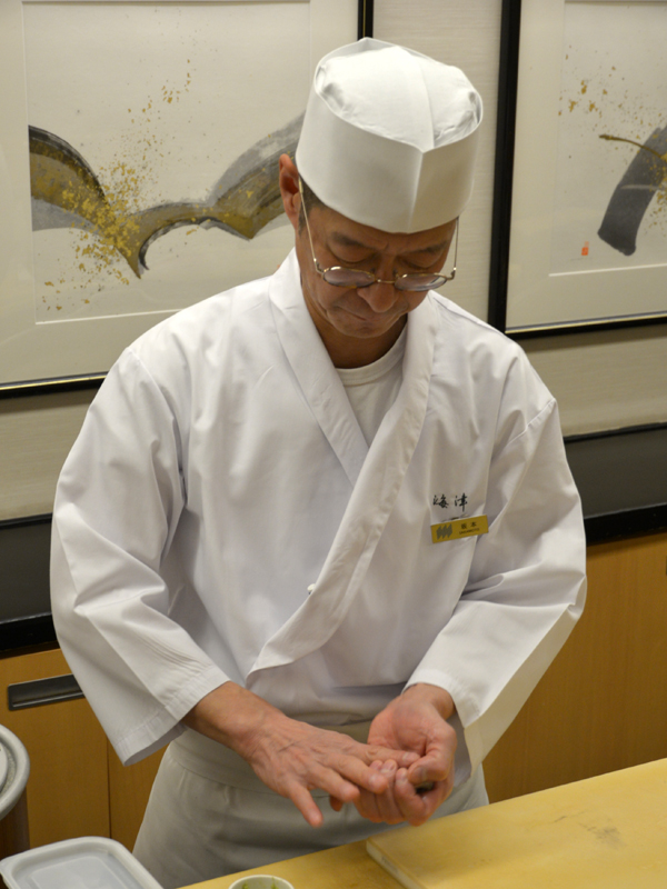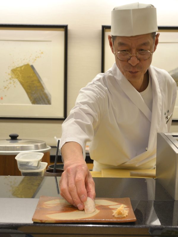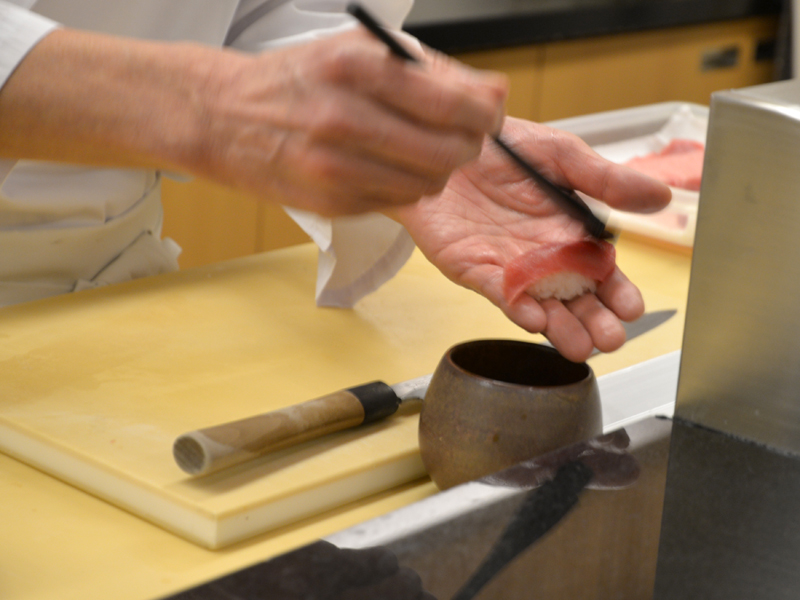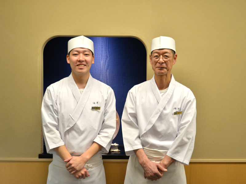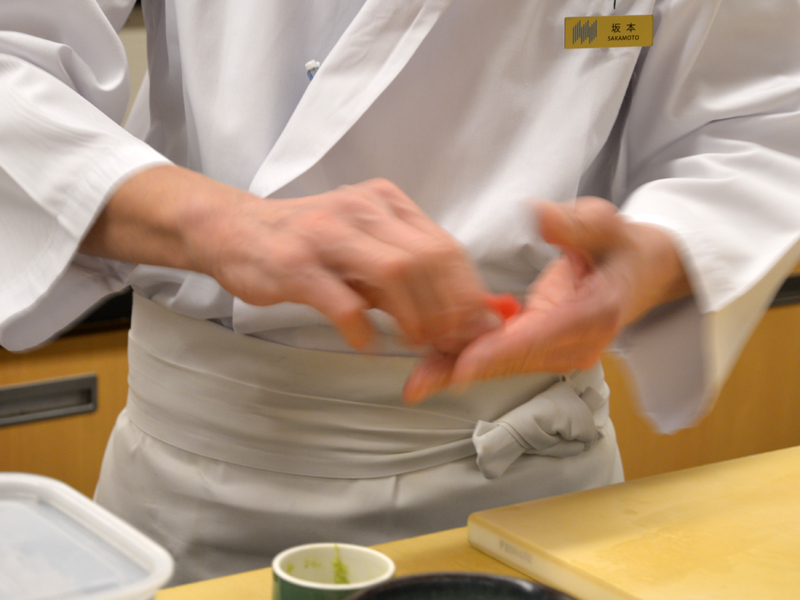 このおふたりは親子ほど年齢が離れているそうですが、非常にフランクで和気藹々とした掛け合いをされていました。こうしてベテランの寿司職人さんと若手の寿司職人さんが楽しそうに仕事をしている風景を見ると心が和みます。