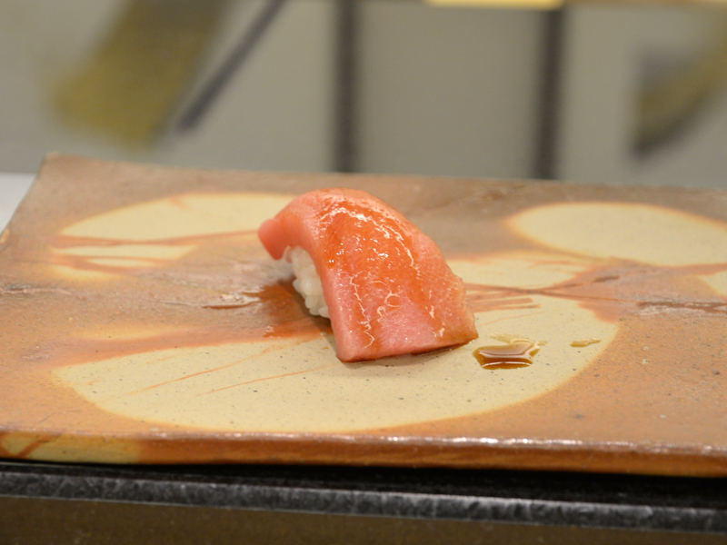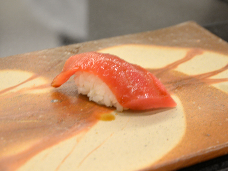 あっという間につけ皿に赤身が乗りました。提供まで早すぎたのに動揺して写真がブレました。
