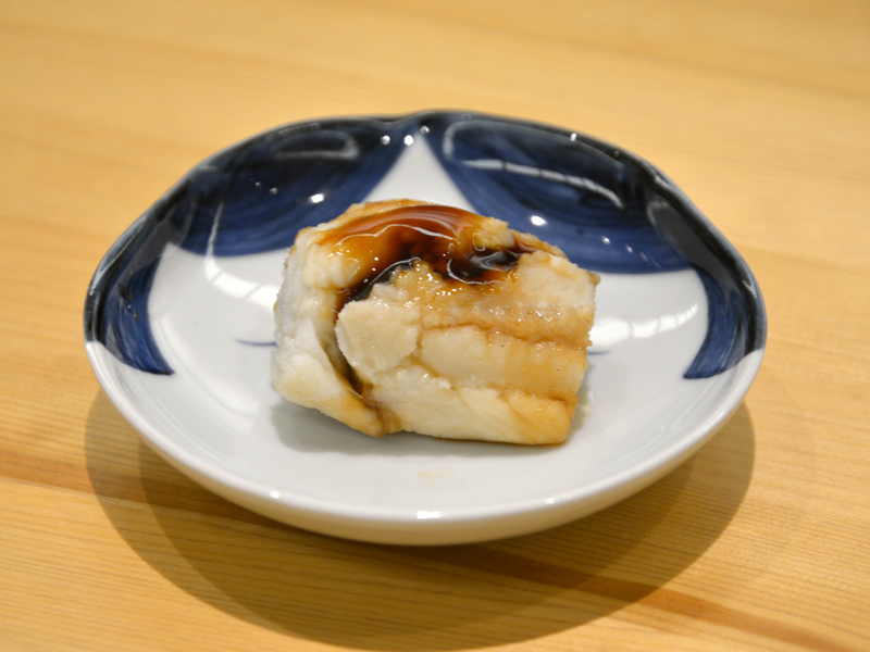 真鯛の昆布締めも美味しかったですが、金目鯛もシーズン的に脂がのっていて非常に美味。握りたてのシャリは温かく柔らかく、ネタとの一体具合がより強い。