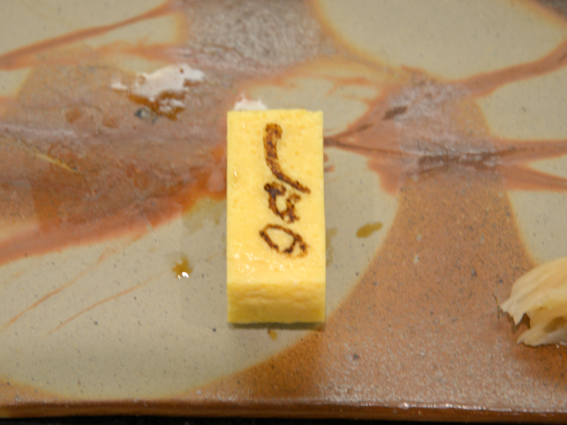 握りのラストは穴子。ツメがつけ皿にたれないよう豆皿に乗せて提供されます。ふわふわでとても美味しい。最後に玉(玉子焼き)。店名の「しなの」の焼印が押されただし巻き。出汁がとても美味しいので玉子焼きもここまでくるとご馳走です。今日は出汁巻きでしたが、日によってはカステラ型の玉子焼きの時もあるそう。