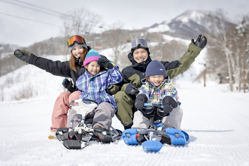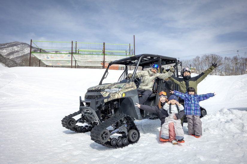 5人乗りバギーで雪原を走るクルージング体験や、ハンドル付きソリ「スノーレーサー」など、操作が簡単で安心して楽しめるアクティビティがそろい、家族連れやノンスキーヤーにも人気。
