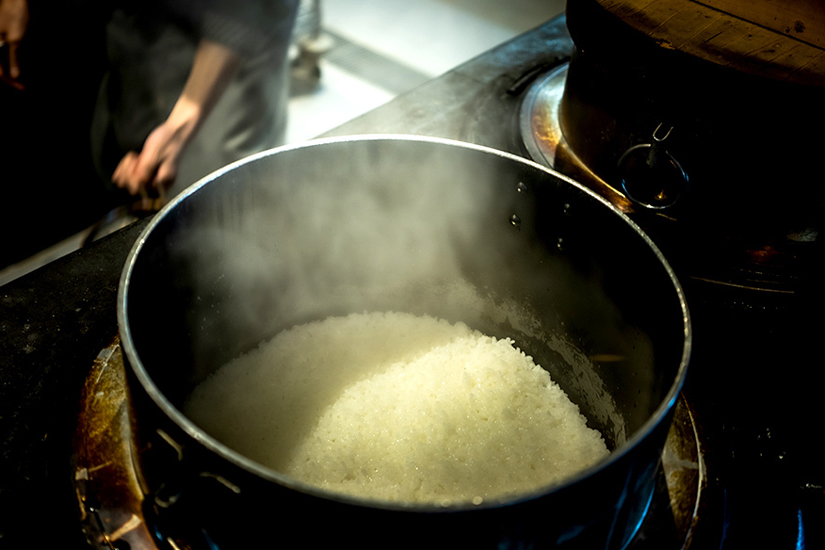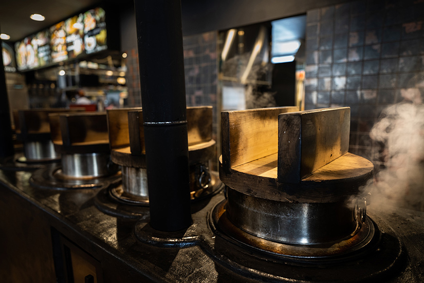 食事処「鬼の厨」では、釜戸で炊き上げた小谷産コシヒカリと地元食材を使ったメニューが味わえ、ほっと落ち着くひとときを過ごせます。