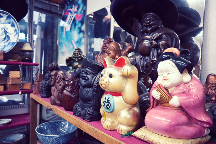 「パン香房 一輪の華」の目の前にある、思わず足を止めてしまう古物店「みなとや」。