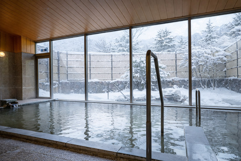 温泉につかりながら、雪景色とともに、すぐそばを走るローカル鉄道・大糸線の姿を眺められるのも、この場所ならではの魅力。華やかさよりも落ち着きを大切にしたい人におすすめの、雪国の風情を味わえる湯処です。