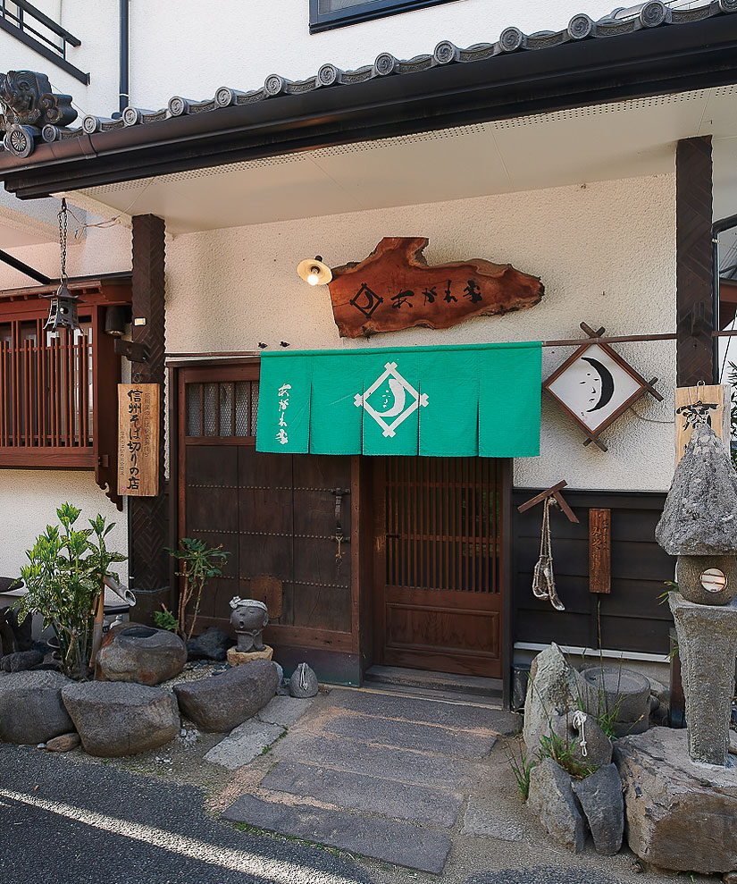 細い路地を入った先にあるこちらは、山好きのご主人が2003年に開いた店。なべくら高原と木島平で栽培する蕎麦を自家製粉し、毎朝5時から手打ちする、香りとのど越しのいい十割そばと二八そばを味わえます。