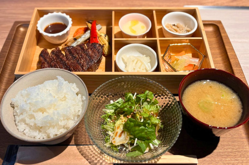 ランチタイムには、飯山市産の信州プレミアム和牛や地元野菜、飯山米を使用した御膳スタイルの特別メニュー「信州プレミアム和牛赤身グリルドラゴン特別醤油バターソース」(2,950円)を用意。