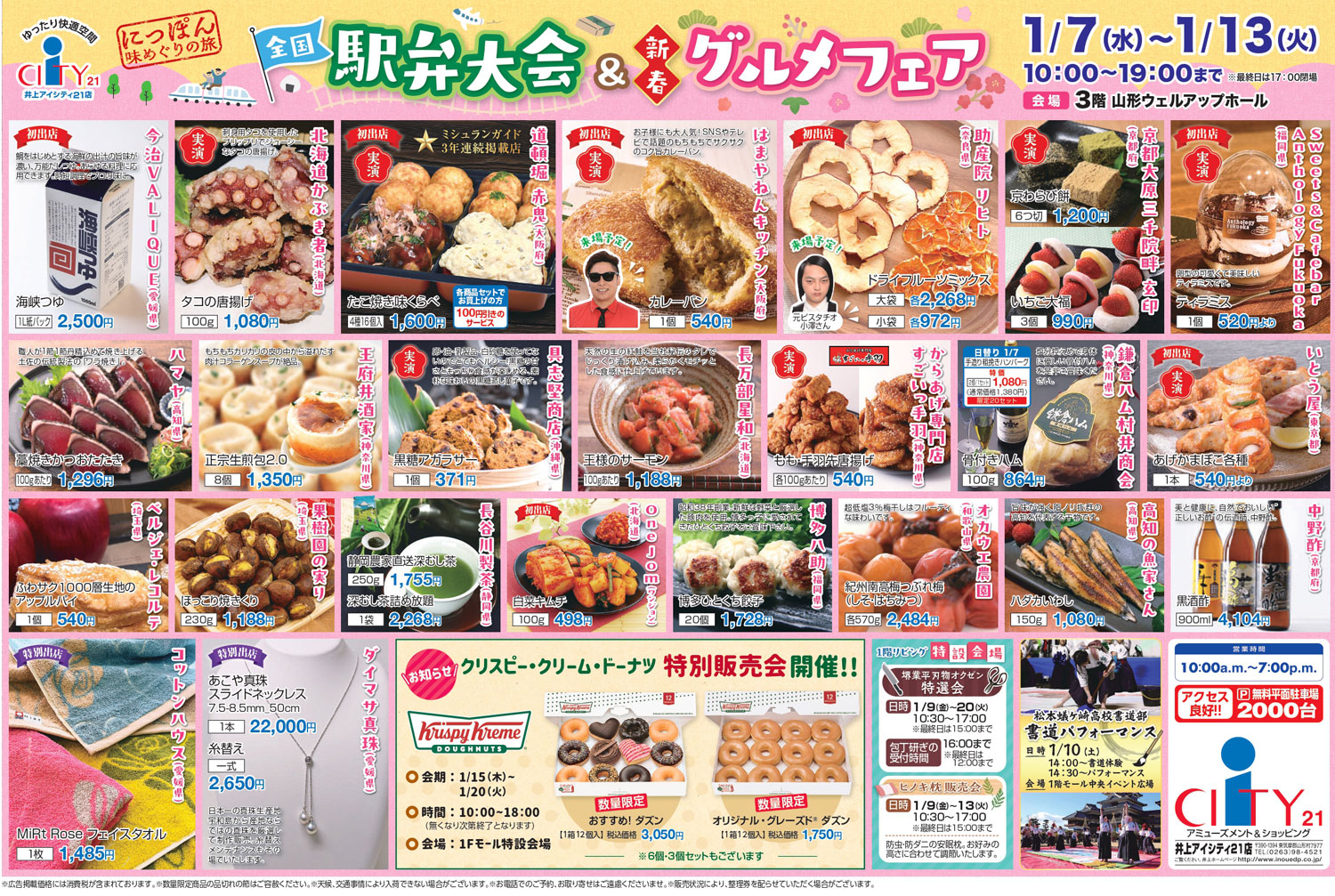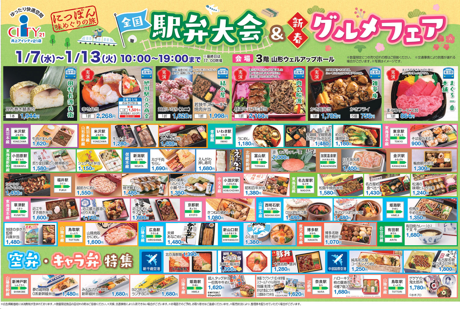 松本市街地からもアクセス良好の山形村の大型複合商業施設「井上アイシティ21」で、『全国駅弁大会&新春グルメフェア』が、2026年1月7日(水)~1月13日(火)に開催。