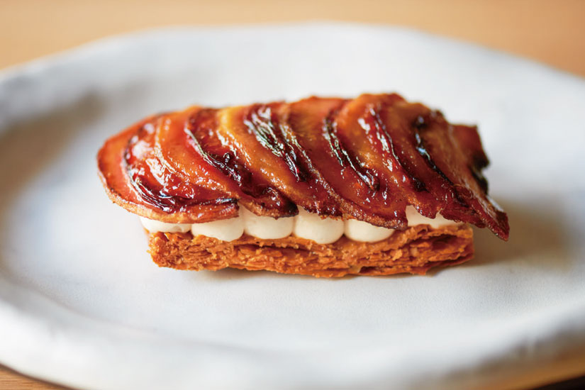 プルーンと紅玉が美しいデザートに。