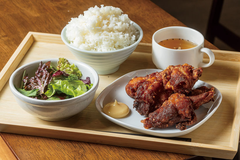 ボリューム満点の「特製唐揚げ定食」(1,000円)が評判で、自家製の漬けダレにじっくり漬け込んでから、丁寧に揚げたこだわりの唐揚げは、外はカリッと、中はジューシー。
