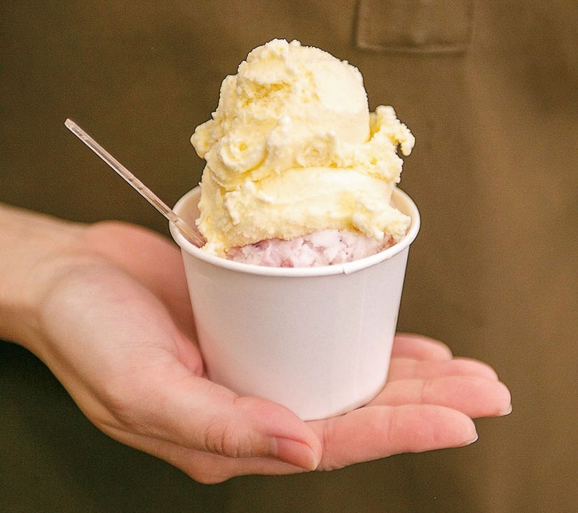 卵や季節限定のフレーバーなど常時5種類のジェラートを用意(300円~)。