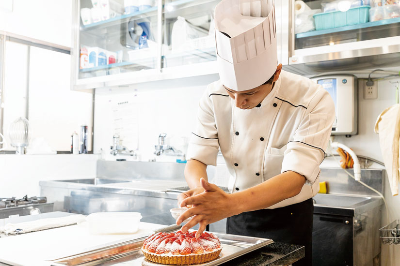 何層にも重なる繊細なタルトを崩さないよう慎重に仕上げていきます。