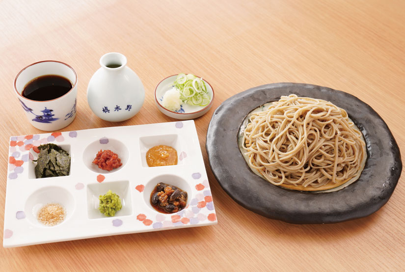おすすめは、熟練の職人が手打ちした十割そばや更科そばを、6種類の薬味でいただくメニュー。一口ごとに違った味わいが楽しめます。
