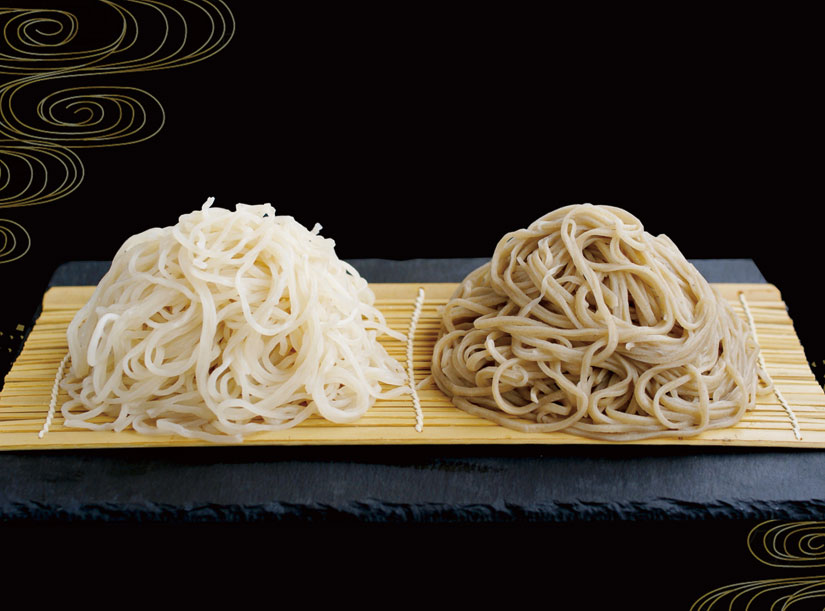 香りが繊細でつるっとした喉越しの更科そば(左)や、香り高く滑らかな食感の二八そば(右)も人気です。