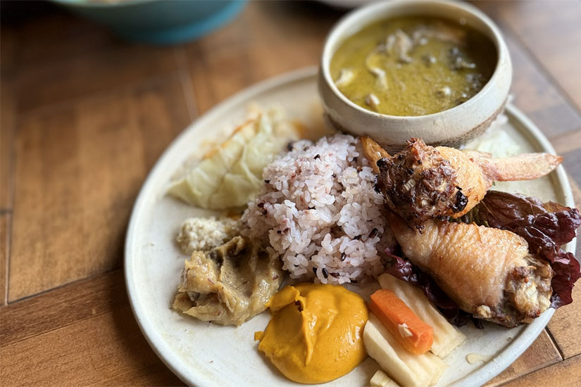 カンボジアの家庭料理をベースに、信州の旬野菜やハーブを取り入れたやさしい味わいが楽しめる一軒。木の温もりに包まれた空間で、月替わりのプレートやカレー、体に寄り添うスイーツを提供。看板メニューはレモングラスなどの多彩なハーブをすりつぶしたペーストベースに、ココナッツミルクなどを使った「カンボジアカレー」。日常を少しだけ旅気分にしてくれる、心ほどける場所です。