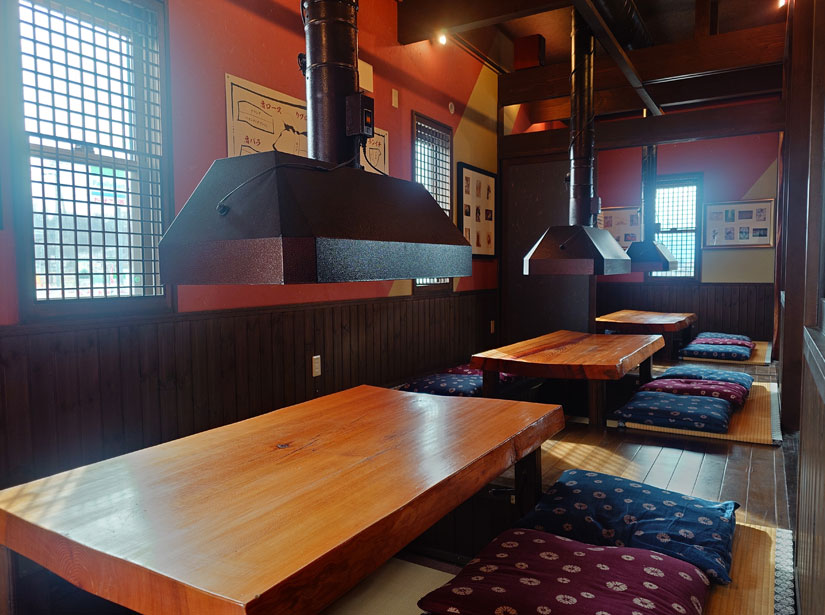全席炭火焼で、小上がり席に加えてカウンター席を用意。