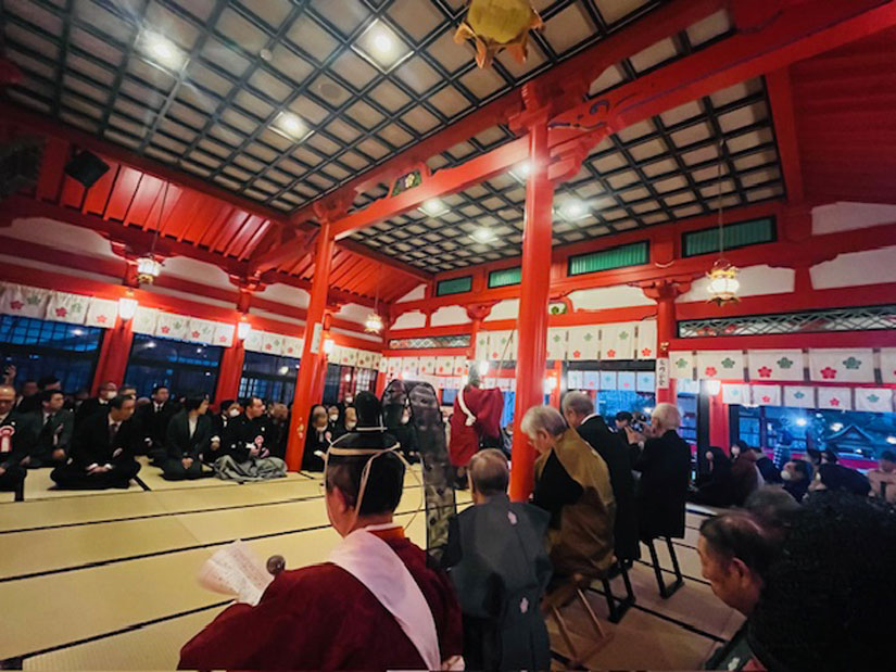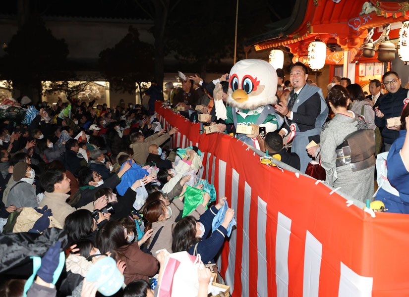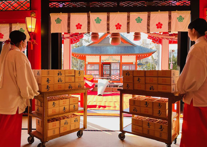 厳かな追難の儀式と共に12本の鏑矢を境内それぞれの方向へ放ち、手にした人は疫病災難から免れると言われている鳴弦の儀が行われる『節分祭』と、今年も年男・年女・福男・福女の方々の「鬼は外、福は内」の号令とともに福枡に入った炒り豆・餅・みかん・福銭・お菓子等がまかれる「豆まき」が行われます。ゲストに松本山雅FCのガンズくんや片山真人さん、カンロ株式会社の公式キャラクター・カンロちゃんなどを迎え、拝殿前特設ステージ、天神会館東側、特設ステージ南側の子どもコーナーの3会場で同時開催されます。