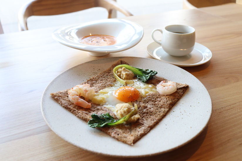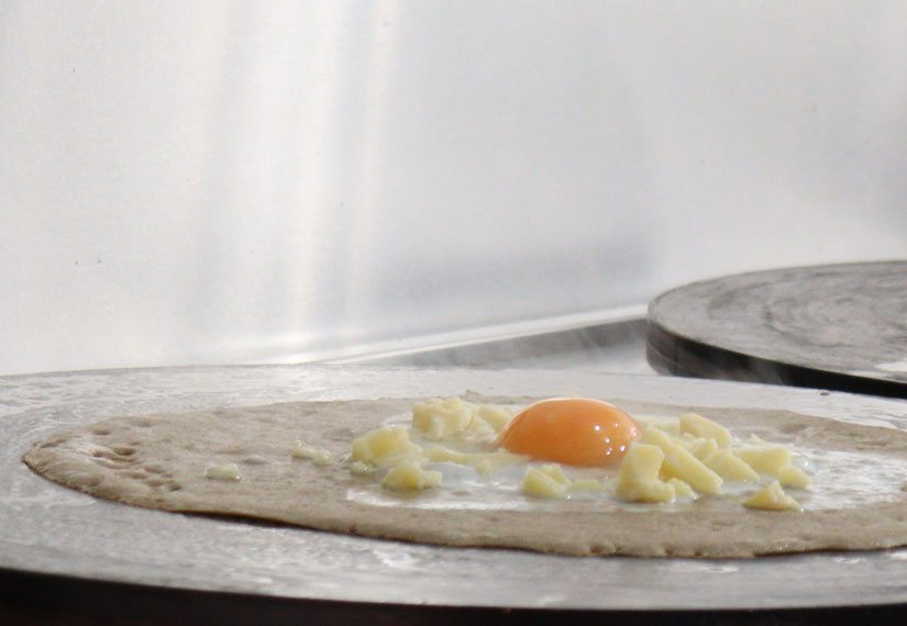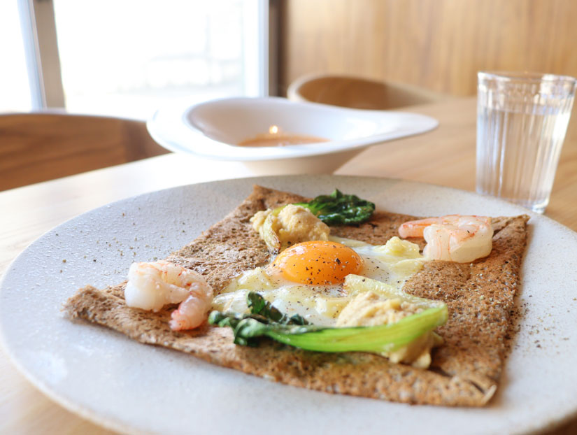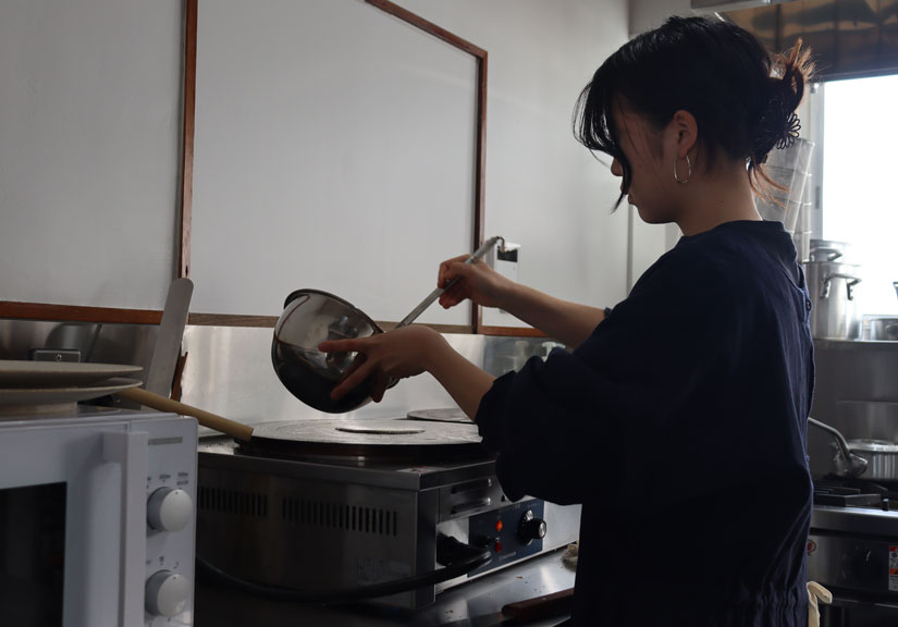 ガレットを提供しようと思ったのは、「私の世界一好きな食べ物がガレットだから」と酒井さん。”蕎麦”といえば信州そばとしていただくのが一般的。でも、そば粉と水と塩だけで生地を作り、こんがりと焼き上げるガレットは、そば粉本来の風味をダイレクトに味わえる一品。
