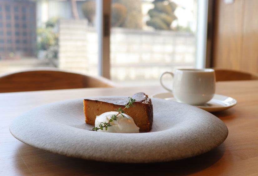 「バスクチーズケーキ」は、季節によって組み合わせる素材を変えています。1月の「バスクチーズケーキ」は、香ばしさとチーズのコクがマッチしたキャラメル。滑らかな舌ざわりにもうっとりする仕上がりで、スッキリとしながらも深みのあるブレンドコーヒーとの相性も抜群です。