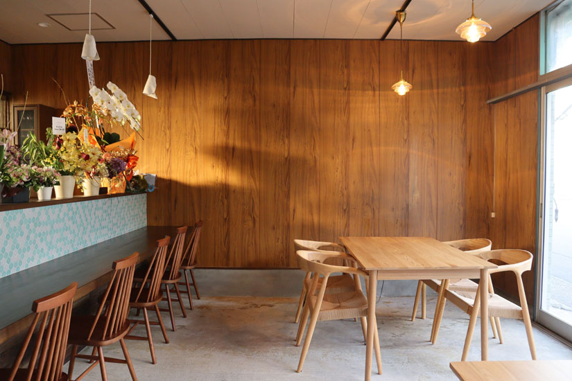 元八百屋さんをリノベーションした趣ある店内は木の温かみの中に、打ちっぱなしの床やかわいらしいタイルが印象的で、どこか懐かしい雰囲気が漂います。