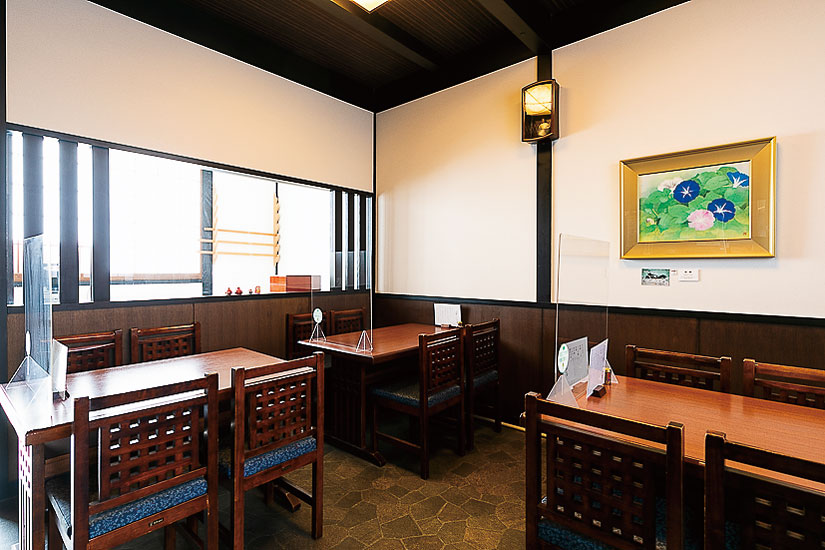 小諸の相生町商店街近くに建つそば店。店内はテーブル席とカウンター席を完備。