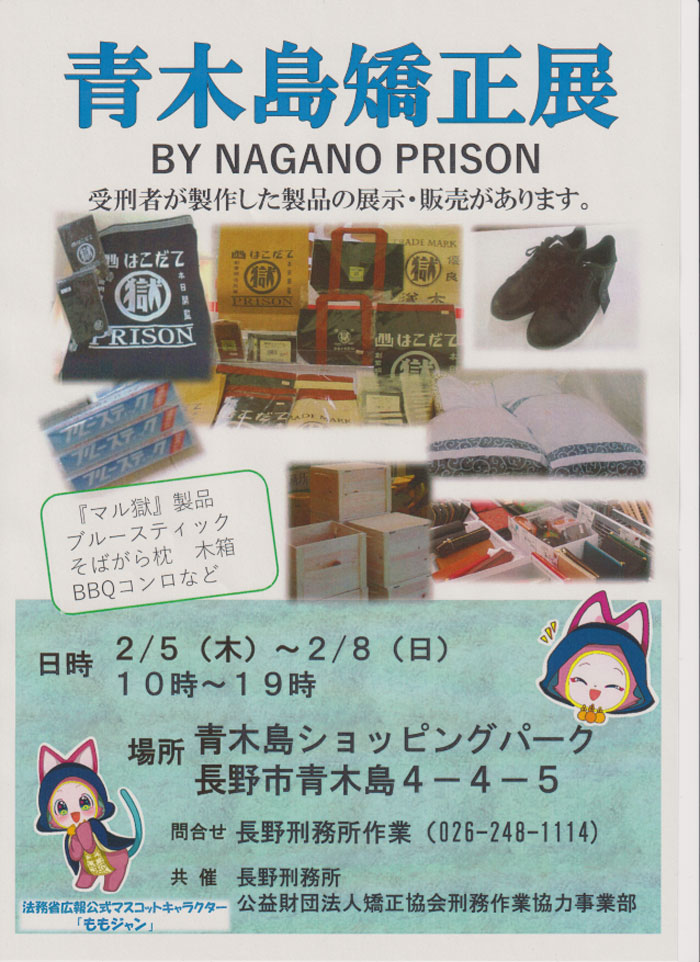 長野県長野市で、受刑者が製作した作品の展示販売会『青木島矯正展』が、2026年2月5日(木)~2月8日(日)に開催。