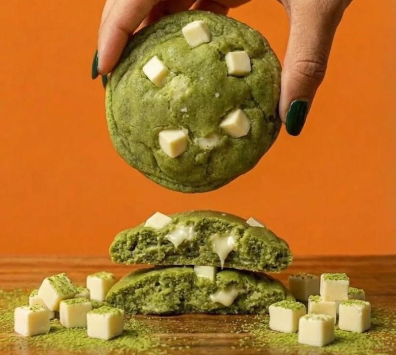 「抹茶ホワイトチョコ」のコンセプトは、ガツンと記憶に残る「食べる濃厚抹茶ラテ」。たっぷりの抹茶が入った生地に、ミルキーなホワイトチョコを組み合わせ。レンジで少し温めと、発酵バターが溶け出し、生地はふにゃふにゃの生食感に。