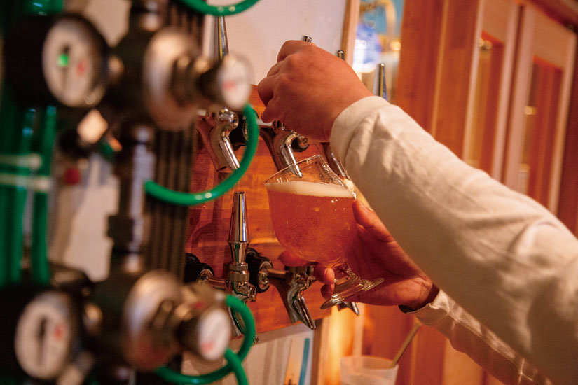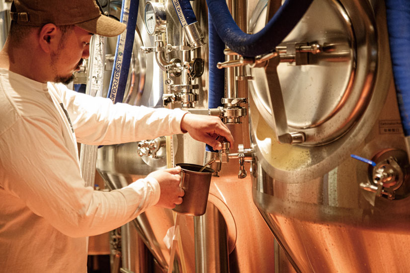 現在タップルームで味わえるのは、個性豊かな9種類のクラフトビール。ビール造りに必要な原料はモルトとホップ、酵母、水とシンプルですが、「作りたいビールの味に合わせて使う素材や配合を変えている」と田中さん。