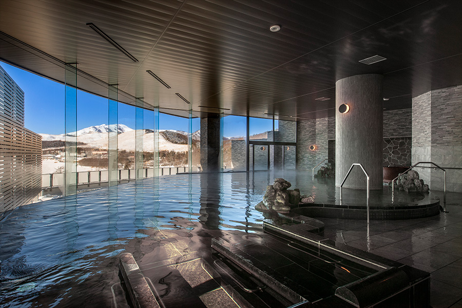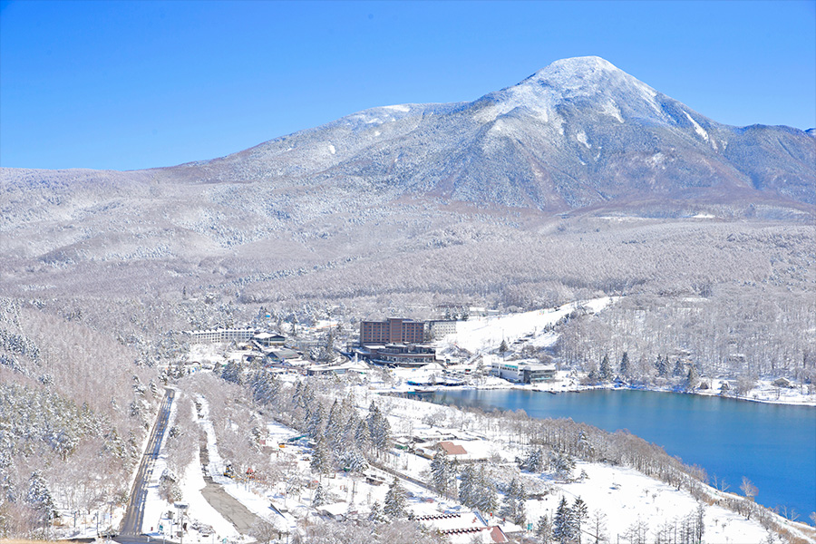 雪遊びやスキーで身体を動かした後は、ホテル内の「天然温泉 湖天の湯」で疲れを癒しましょう。露天風呂からは白銀の白樺湖の絶景が広がります。