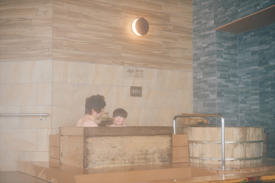「木の湯」は木曽ひのきを贅沢に使用し、「石の湯」は天然石をベースにした造り。