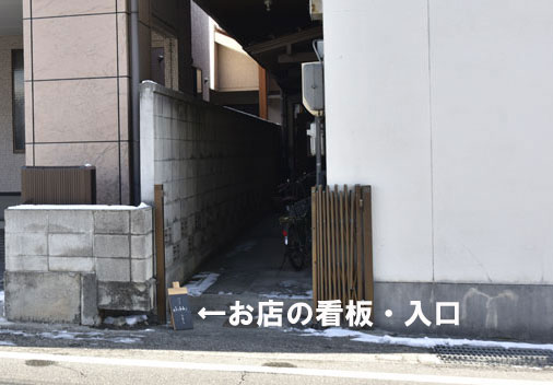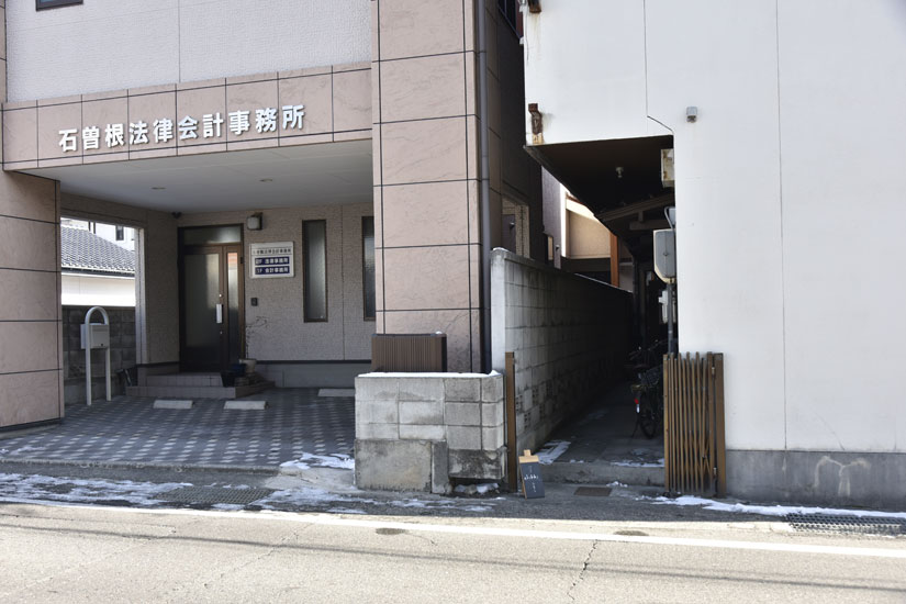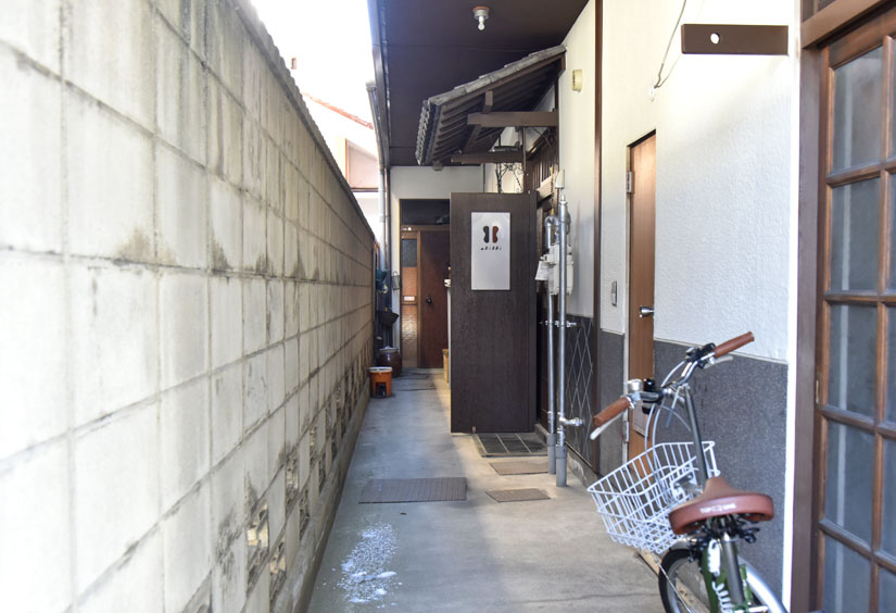 白い外壁の建物の路地のような隙間を入り、進んだ先の右奥。