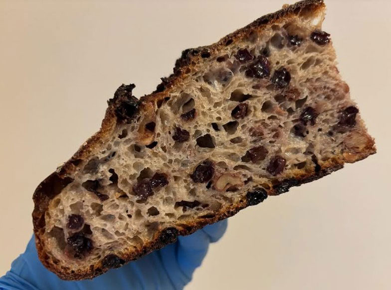 100%の粉に対して120%の水分を加えるという超高加水なパンは、水を浸透させるため完成までは3日を要します。麹ダネを使用し、ほんのり甘みのある食事パンは、あんこやジャムを挟んでもおいしいですよ。